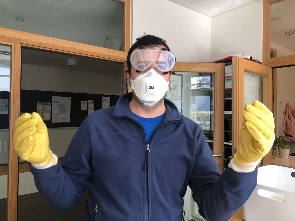 Theo rüstet sich schon mal für den Großputz in diesen Zeiten.