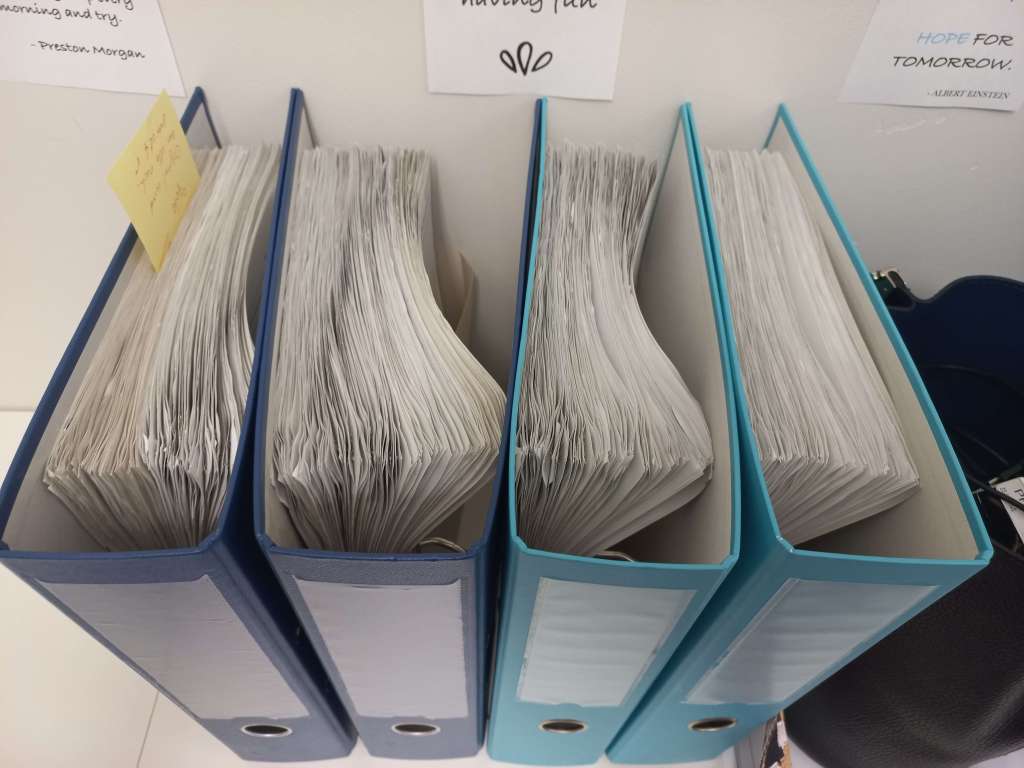 Kistenweise Material wird geliefert, für das wir erstmal Aufbewahrungskisten brauchen.
