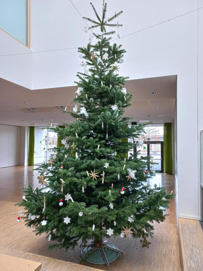 Theo hat ihn mit Unterstützung aufgestellt. Fleißige Hände haben ihn wunderschön geschmückt.
