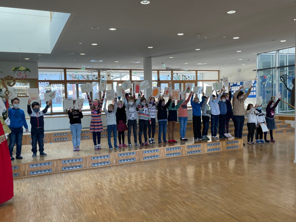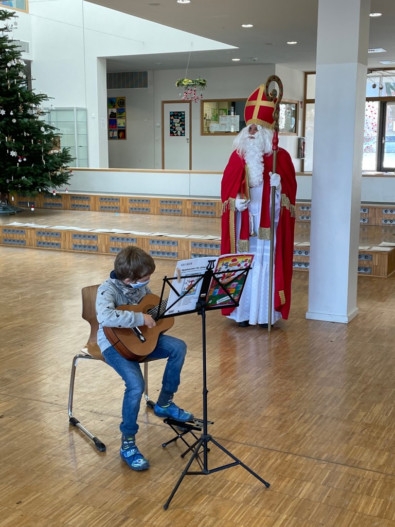 Die Kinder hatten sich aber auch viel Mühe gemacht, mit Liedern, Gedichten, Musikstücken und anderen Vorträgen dem Nikolaus zu zeigen, dass sie in der Schule fleißig sind und viele schöne Sachen lernen.