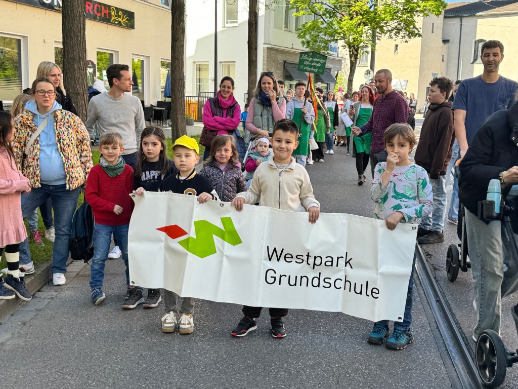 Auch eine (kleine) Abordnung der Westparkschule ging mit und zeigte, dass wir als Schulfamilie Teil unseres Stadtteils sind.