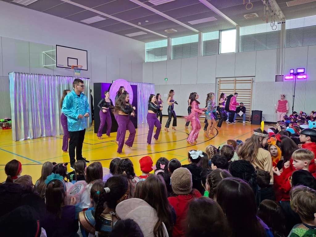 In der Turnhalle wartet wieder die Showtanzgruppe DanceEmotion von Sarah Lettieri und begeistert uns mit einer coolen Show zu Hits aus den 70ern bis heute. Zwar kennen die Kinder ABBA nicht, aber es sind ja auch die Lehrkräfte da.