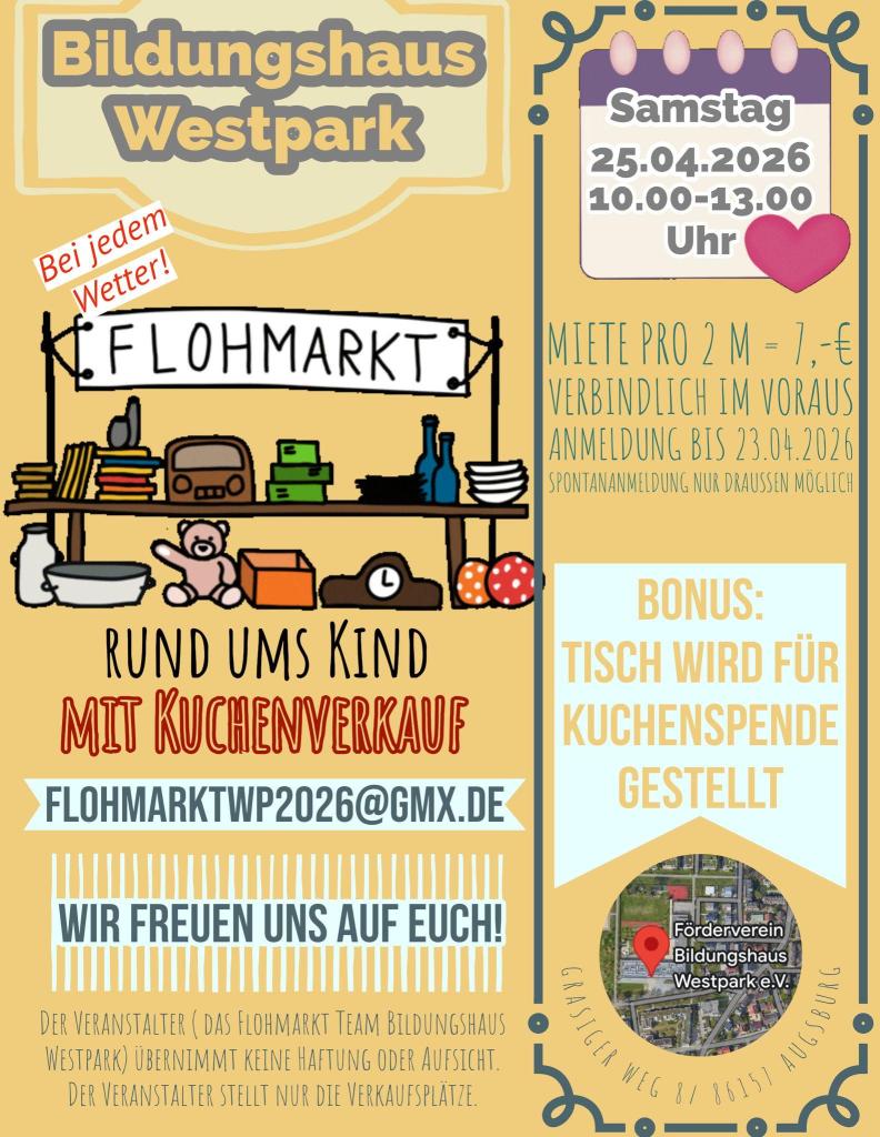 Flohmarkt im Westpark-Bildungshaus 22. Februar 2026 / pih66 Herzliche Einladung zum Verkaufen und Kaufen! Vielen Dank an die Organisationsgruppe! Ähnliche Beiträge