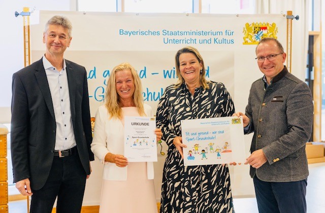 „Ob in der Halle, auf der Laufbahn oder im Schwimmbecken: Sport ist gesund, er fördert die Konzentration, den Teamgeist und das allgemeine Wohlbefinden. Vielleicht sogar noch wichtiger: Er macht unglaublich viel Spaß.“ Kultusminister Michael Piazolo ist sehr gerne zur Auszeichnung der neuen Sport-Grundschulen an die Grundschule am Ravensburger Ring in München gekommen, denn so der Minister weiter: „An Bayerns Schulen wird Sport nicht nur unterrichtet, er wird gelebt. Es ist mir ein sehr großes Anliegen, möglichst viele junge Menschen in möglichst jungen Jahren für den Sport zu begeistern. In der Schule haben wir eine riesige Chance, die wir nutzen, um jungen Menschen die Freude an Bewegung und gesunder Ernährung zu vermitteln.“